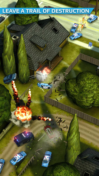 逃亡过程中,主角不忘自己是一名逃犯,时刻都会记住“报复社会”这一个座右铭,看到可以破坏的东西就会去破坏。撞坏有小箭头指着的物品就可以获得一定的破坏点数,这些点数可以用来强化车辆等,好在这能和逃跑同时进行。就像国外新闻看到的,悍匪一路狂奔,车跑到哪,东西就烂到哪!