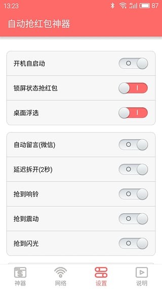 4、微信抢红包延时:附加微信抢红包延时功能,自由设置微信拆红包延时时间。