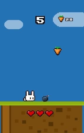 闪避兔子(Rain Bunny)是一款画风非常Q萌可爱的益智类休闲游戏。在游戏中玩家要控制兔子在草坪上收集掉落的胡萝卜和躲避坠落的巨石。