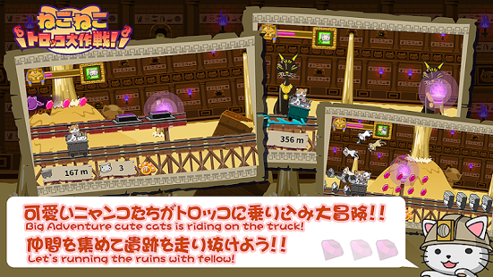 喵喵矿车大作战是一款以Q萌的喵酱搭乘着矿车进行遗迹探索的跑酷动作游戏,游戏中只需点击进行跳跃即可,玩法简单容易上手,搭载了不同的难易程度,玩家可利用道具躲避障碍,尽可能的跑更远~