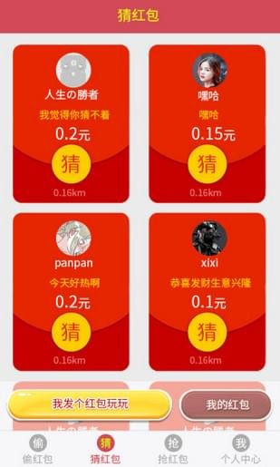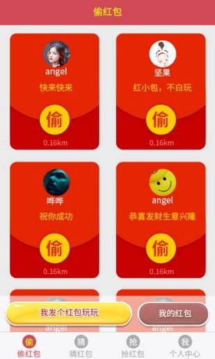 偷红包,成功偷出就赚钱,还可以发红包让别人偷。