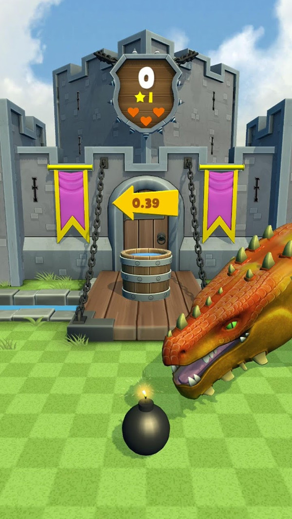 2、在你投掷炸弹的过程中,小龙会干扰你,喷出火焰,使你的炸弹从它的路径上转移。