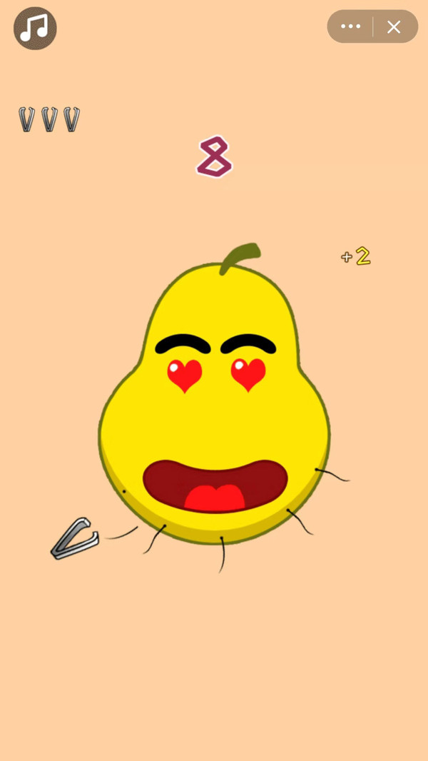 拔胡子是一款休闲节奏小游戏。游戏画风非常简单,玩法也同样简单,就是拔掉水果上面莫名长出来的一大堆胡子。游戏的玩法非常新颖,也很搞怪,你需要用一个夹子,不停配合着节奏拔掉他的胡子。