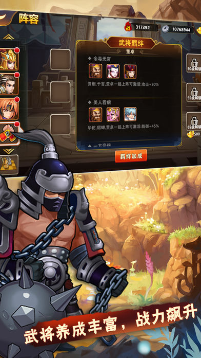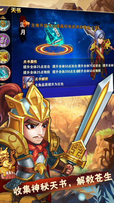 3、丰富属性装备配置,技能、天命、觉醒多种养成路线,闪避流、暴击流、破挡流等诸多套路,让你打造自己的三国战队;