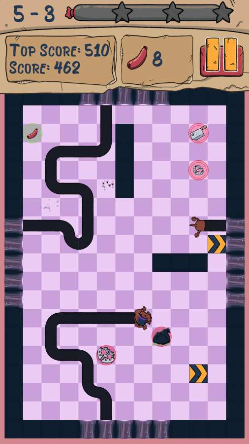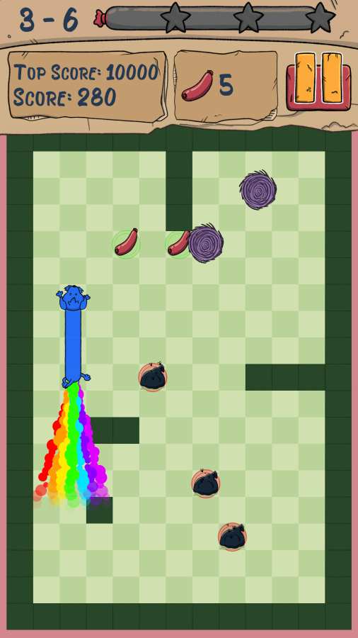3、游戏的地图中存放着许多的食物,避开陷阱直奔香肠!