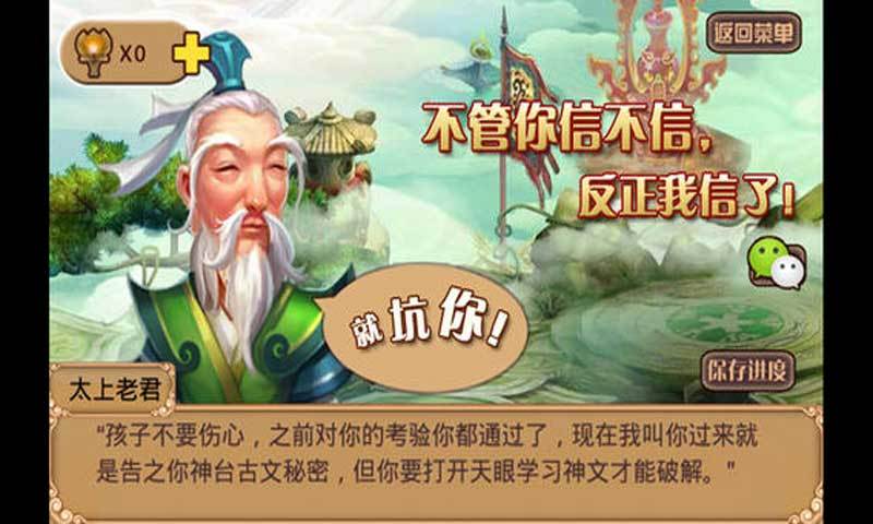 妈妈去哪儿是一款依据《宝莲灯》之沉香救母故事为背景,很好的延续了原著的东方神话大作。游戏主要玩法为选题闯关,只有答对所有题方可通关,只有顺利通关才会揭开《宝莲灯》未为人知的真相!