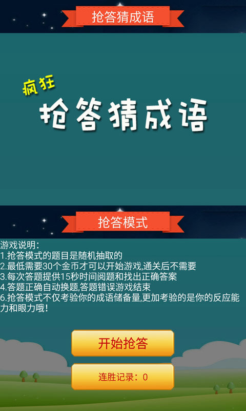 抢答猜成语是一款免费单机游戏,休闲益智的答题解谜类型游戏,高清的卡通图片代表着什么成语故事呢?快来试试看你的成语词汇量到底有多大吧!咱游戏唯一拼的是智商!在玩游戏的同时增加了知识,抢答过程刺激而又有趣,还能锻炼思维能力和反应能力,你还在发什么呆呢?700+的题目,疯狂的看图猜成语吧!
