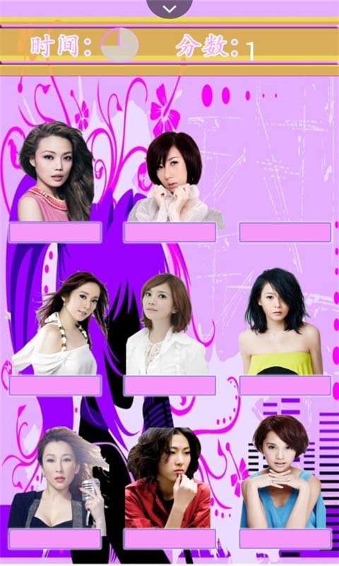 最强台湾粉是一款聚集了众多台湾明星大腕的益智类答题手游,看屏幕,在一定时间内,认出台湾女歌手,并点击她们,若是点击错误,那游戏就结束了。这是一款挑战你对台湾女歌手的熟悉度,快来挑战吧。