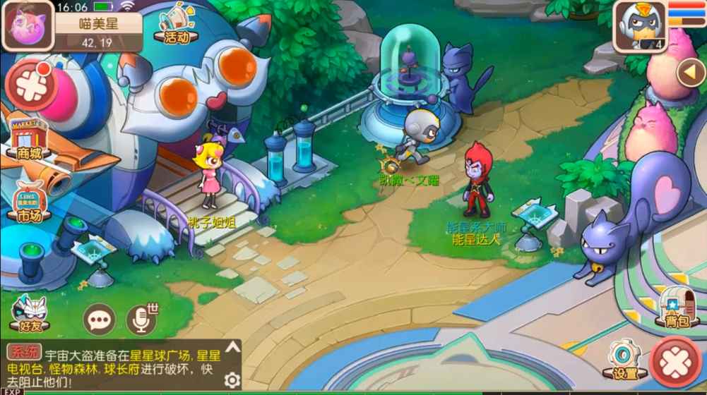 《开心超人》是一款Q版、重社交的手游。相比较原著动画,游戏中的人物、建筑环境更加的精致,清新可爱的画面,不仅高度还原动画人设、环境,也开拓了更加广袤的”开心宇宙“,各种原汁原味的剧情等你体验。游戏中除了还原了动画中一些经典的场景之外,还通过设计构思出在动画中镜头很少的“喵美星”“汪财星”等等,让《开心超人》变成了保卫整个宇宙和平的超级英雄。