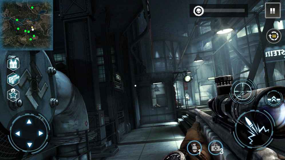 拖拽屏幕移动视角;找到敌人后切换键选择合适的武器,开镜瞄准,对准头部射击,有意想不到的效果。举起手中的枪,为了拯救人类而战吧!