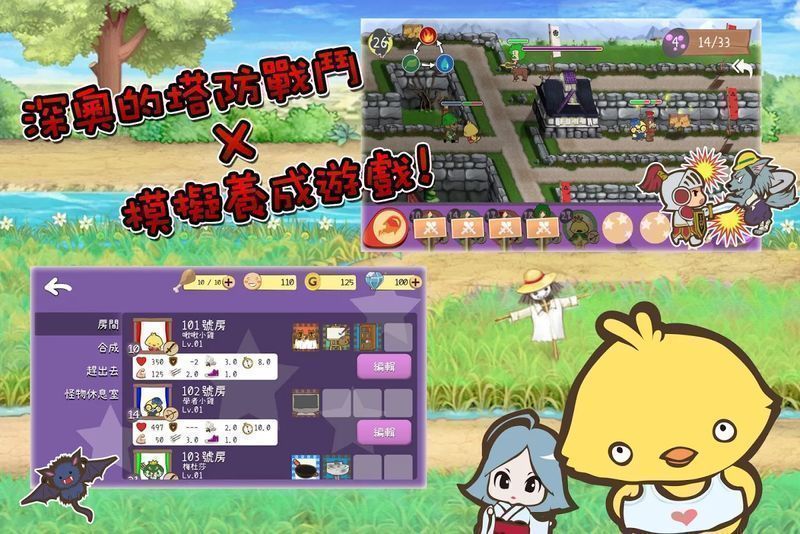 游戏中玩家要考虑出兵的兵种、攻击距离跟属性,拟出战略把怪物配置在最适合的位置,击煺妨碍魔王旅行的敌人吧。