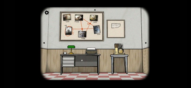 2、点击抽屉,翻看各式物品,点击放大墙上的纸张进行观察。
