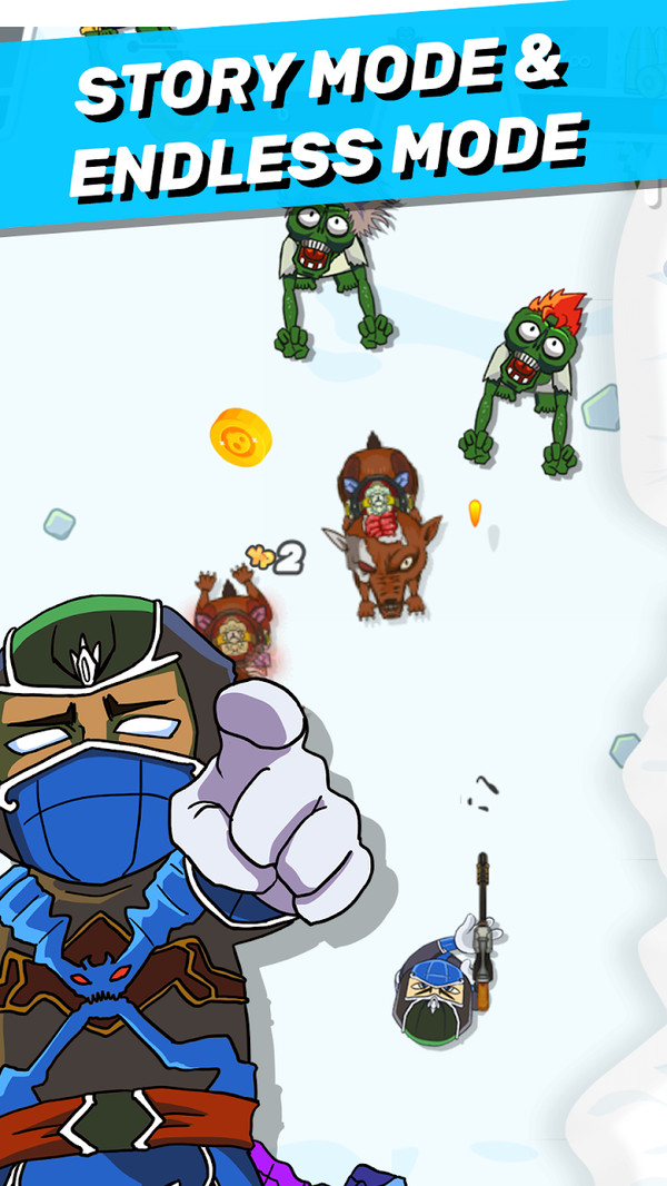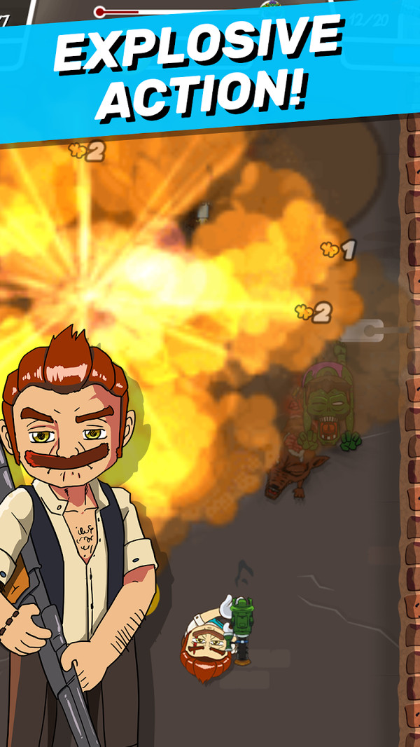 1、美漫风格的画面,充满硬汉气息的英雄角色,踏上消灭僵尸的道路。