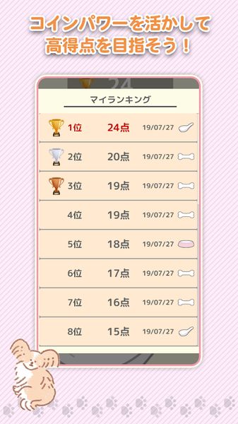 1、通过点击让狗狗们落下,获取分数,完成成就。
