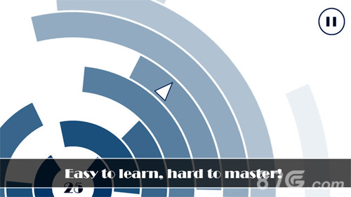 在游戏中玩家需要点击屏幕来控制一个三角形向外逃。在这过程中你需要尽量避免与任何黑色障碍物相撞,这可不像听起来那么容易哦!并且只要你不小心碰到黑色障碍物,整个圈就会向里收缩。这并不会使游戏结束,但也无疑会增加游戏的难度和趣味性!马上把迷幻三角下载过来,享受简约、短暂的迷幻体验吧!