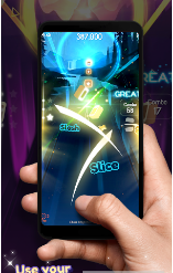 向右、向左、向上切,或完全不切!当节拍飞向你时,用手指作为刀锋猛砍节拍。