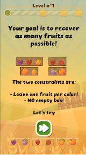 对于每个难度级别,每种颜色的盒子,颜色和水果的数量都会增加,