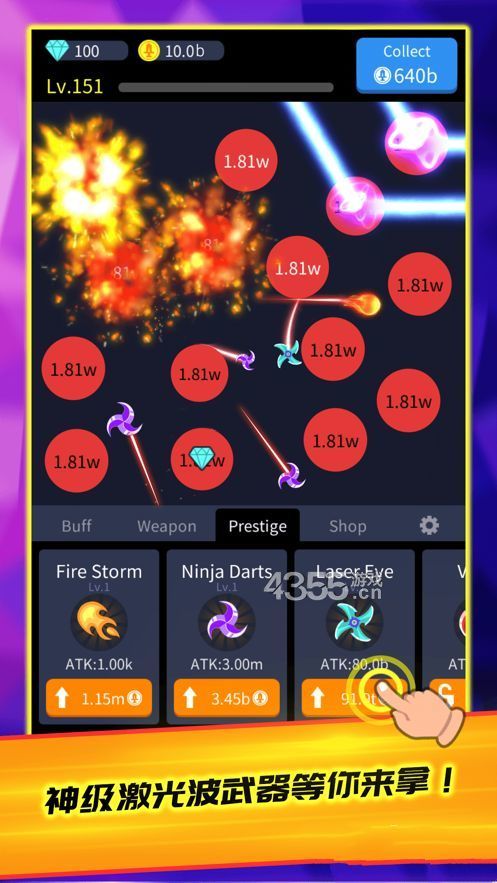 玩家可以通过游戏过程释放压力,并且升级各种武器,体验快乐的游戏。