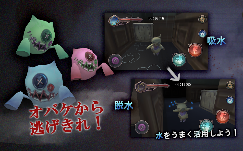 你要在这个充满鬼怪的房间里安全的回到自己的玩具箱里,布娃娃通过吸水可以增强力量。