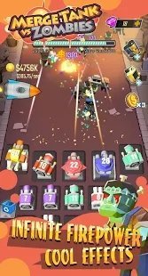 合成升级为更加凶猛的坦克,向他们发射,让僵尸们无所隐藏!