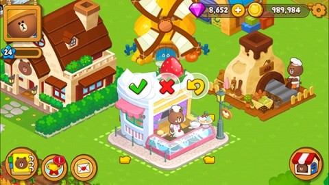 2、等级提升不仅可以扩张更多的土地,增加更多的“小布朗熊”居民,也能解锁更多种类的店铺以及设施;