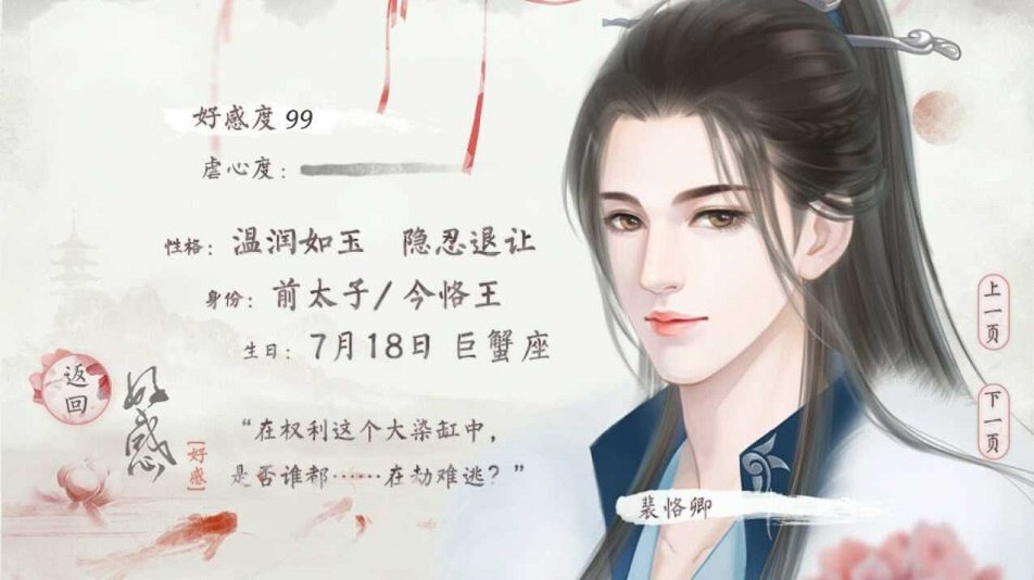 状元|裴君吾|性格高冷孤傲,虐心程度爆棚,攻略请带上纸巾;