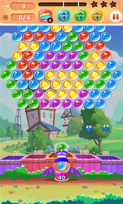 在游戏中,利用反弹来消除更上层的泡泡,下层的泡泡也随之掉落,得分高效率高。