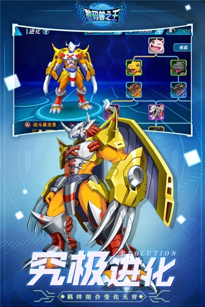 2、经典进化系统,从可爱的小宠物进化成强大战士,钢铁暴龙用力量战胜邪恶。