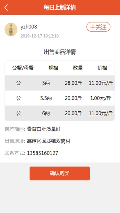利于用户关注螃蟹产品的价格动态,每日的销售价格都有清晰的记录;