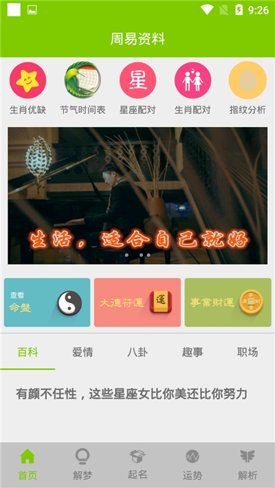 10、实用工具:心理测试、星座紫薇、爱情配对、名俗文化、周公解梦、个人运势等传统文化与现代生活的完美结合