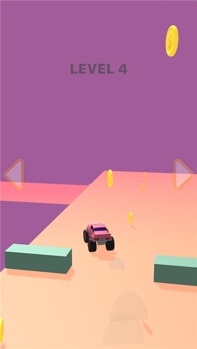 收集沿途的金币,小心不要掉下悬崖,游戏内包含了超多卡车皮肤可以解锁使用