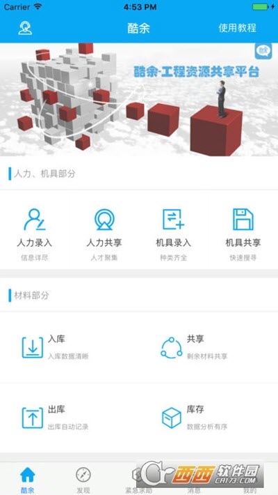 发现:发现是酷余平台上所有用户共享出来的材料信息,用户可以在发现里搜索需要的材料;