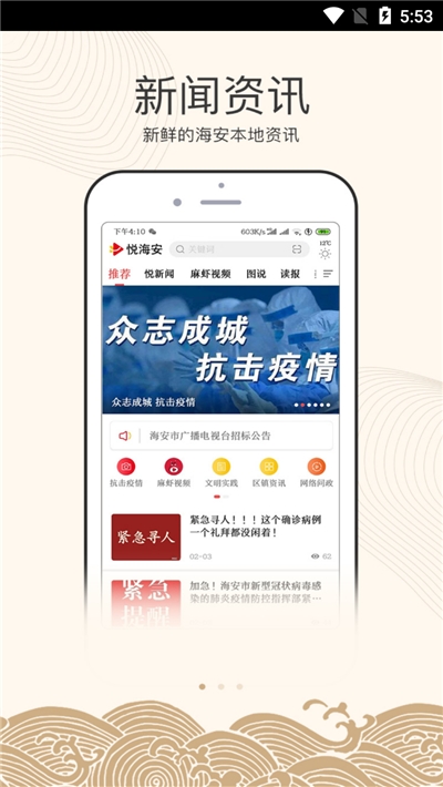 悦海安是一款为海安市民打造的新闻资讯、直播互动、民生服务、智慧城市等于一体的优质便捷、特色鲜明的APP,让接地气、平民化、生动鲜活的优质内容得以展现,更好地和本地群众沟通,为用户服务,接下来游戏爱好者小编就给大家带来这款软件的具体介绍,感兴趣的小伙伴们速来游戏爱好者看看吧~~