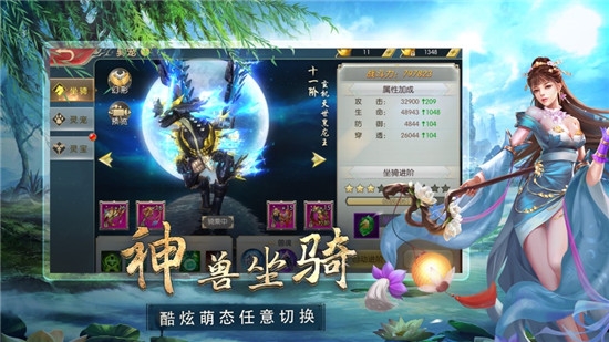 3、神兽宠物和坐骑还能通过升级让造型更炫酷,从Q萌的形象培养成长为更拉风的形象。