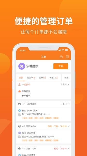 平台接单响应速度快,并且提供极速的上门服务,为用户提供及时的维修服务。