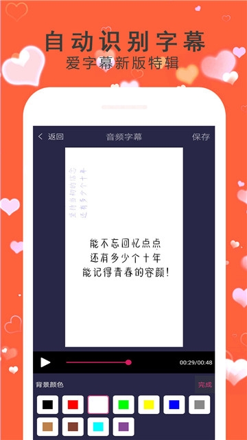 爱字幕视频制作是一款为用户朋友们打造的视频剪辑助手app,这款爱字幕视频制作能够帮助用户朋友们轻松的给视频添加字幕,使用起来非常简单,爱字幕视频制作app中您可以在视频中轻松的插入众多的文字内容,让用户可以更轻松的制作有趣的字幕视频,您的视频才会变得更有个性。