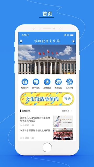 滨海数字文化馆是天津市滨海新区文化馆的官方服务软件,为广大群众提供全面便捷优质的服务项目,拥有文化资讯、文化服务、文化品牌、网上展厅。用户可以线上预约,为广大用户展现天津的全新文化样貌,打造高科技和智能化的文化品牌和服务,一键快速预约,线下体验文化带来的魅力。