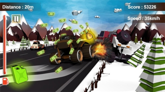 2.在道路上的车辆每次碾压都会获得分数,还有很多的金钱和其他的道具。