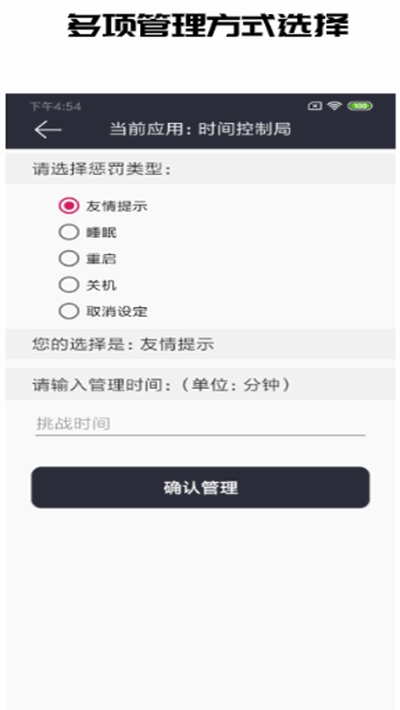 除了单纯的发送友情提示之外,用户还可以选择睡眠、重启、关机等惩罚手段。