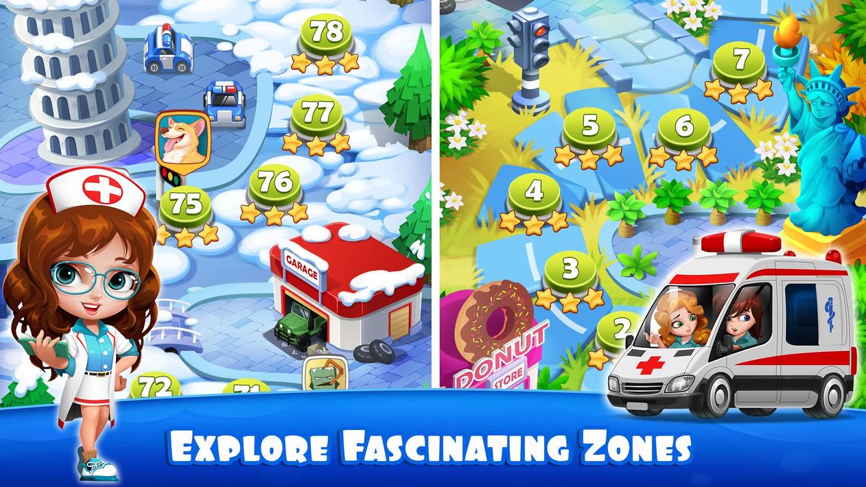 游戏包括警车、救护车、公交车、出租车、甲壳虫车、卡车、火车、直升机等多种汽车,您可以尽情享受解谜游戏的时间,清除塞车或完成救援任务。