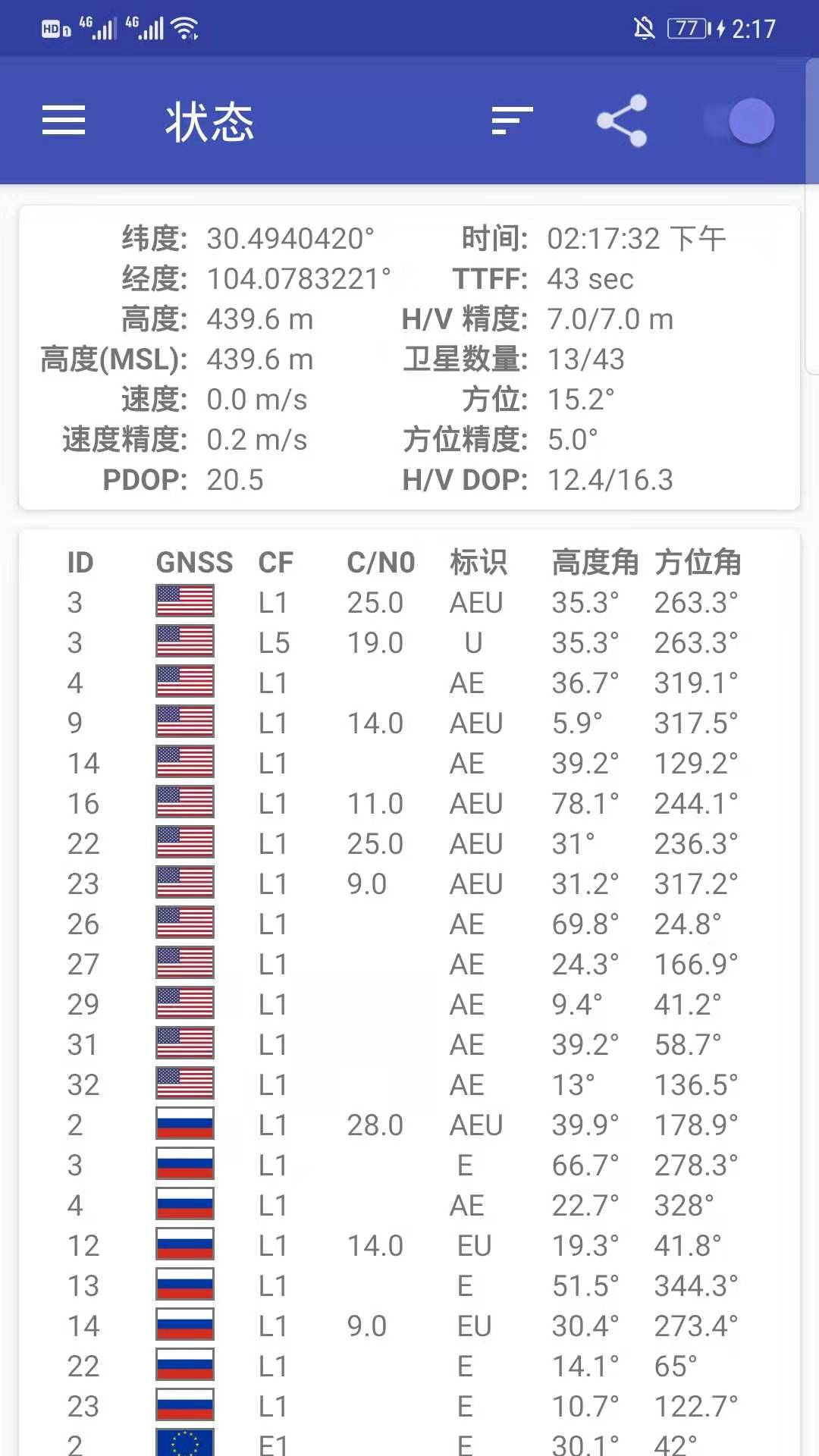 1、GPS信息实时记录,包括卫星数、精度、海拔、访问等信息。