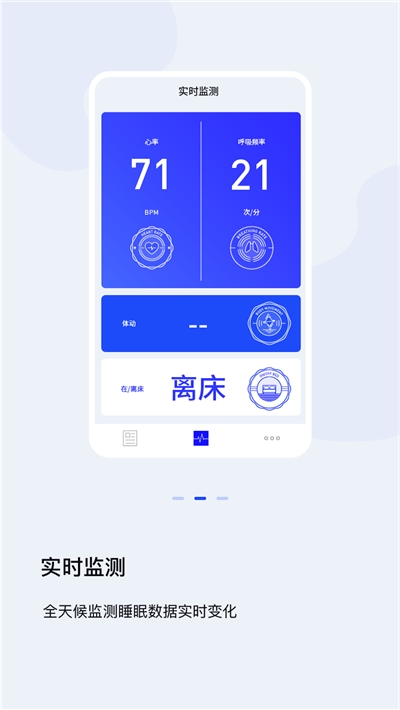 全天候实时监测数据变化,实时监测心率、呼吸频率、体动状况。