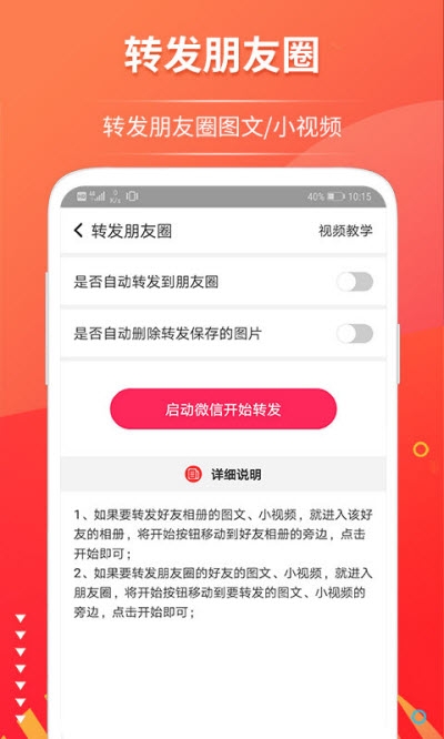 3、一键转发:好友朋友圈视频、图片、文字可一键转发到个人朋友圈
