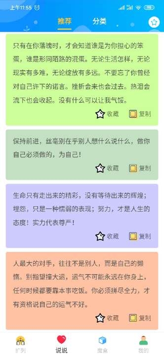3.收录各类型人气说说,潮流、搞笑、超拽、哲理、幸福、奇葩说应有尽有,说说界百科全书等你来发现!