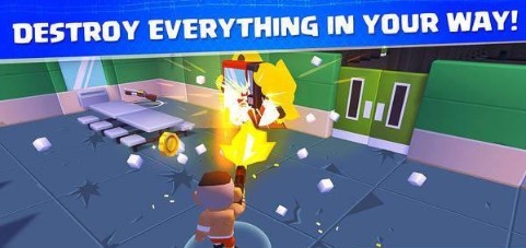 2、摧毁所有出现的家具和墙壁寻找到更多的武器装备,使用强大的装备展开战斗挑战收集足够硬币;