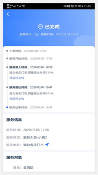 服务人员可查看到服务对象的信息,是否有残疾,以便更好的服务老人