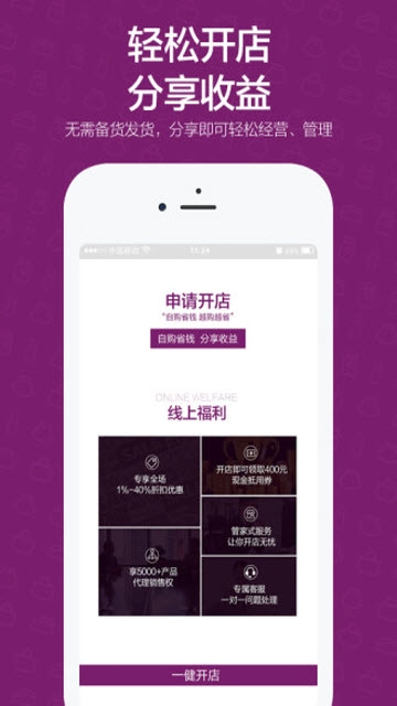 实现0资本开店,想要创业的人可以在此以推广商品的方式而开设自己的店铺进行经营;