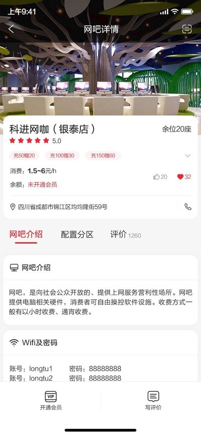 查看自己开通会员的网吧记录,消费余额。