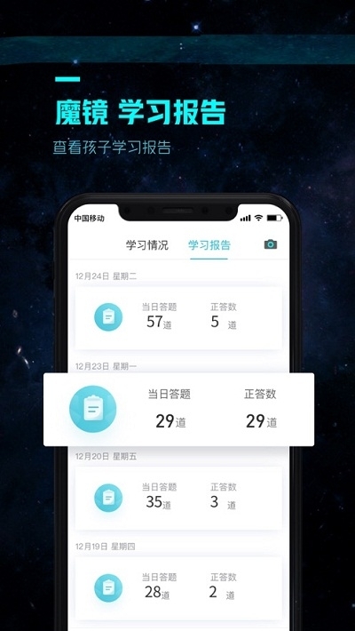家里孩子的学习报告都可以快速查询出来,每一天的学习数据都有不同;