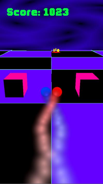 其中两个球(红色和蓝色)速度在一个无尽的景观。你必须通过简单的点击和保持游戏性来控制它们。